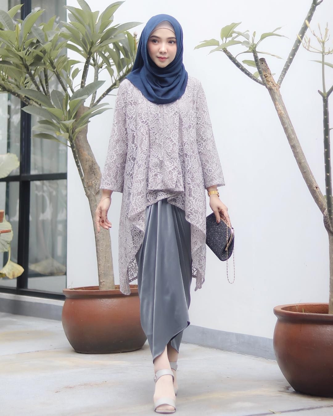 Baju kondangan simple hijab casual. Gaya casual dapat Anda tampilkan dengan memakai atasan brokat yang dibuat model peplum. Memilih warna yang senada dari hijab, atasan dan bawahan dengan warna abu-abu yang senada juga membuat Anda terkesan kalem. Tambahkan pula sepatu dan juga tas warna senada agar penampilan Anda semakin chic.