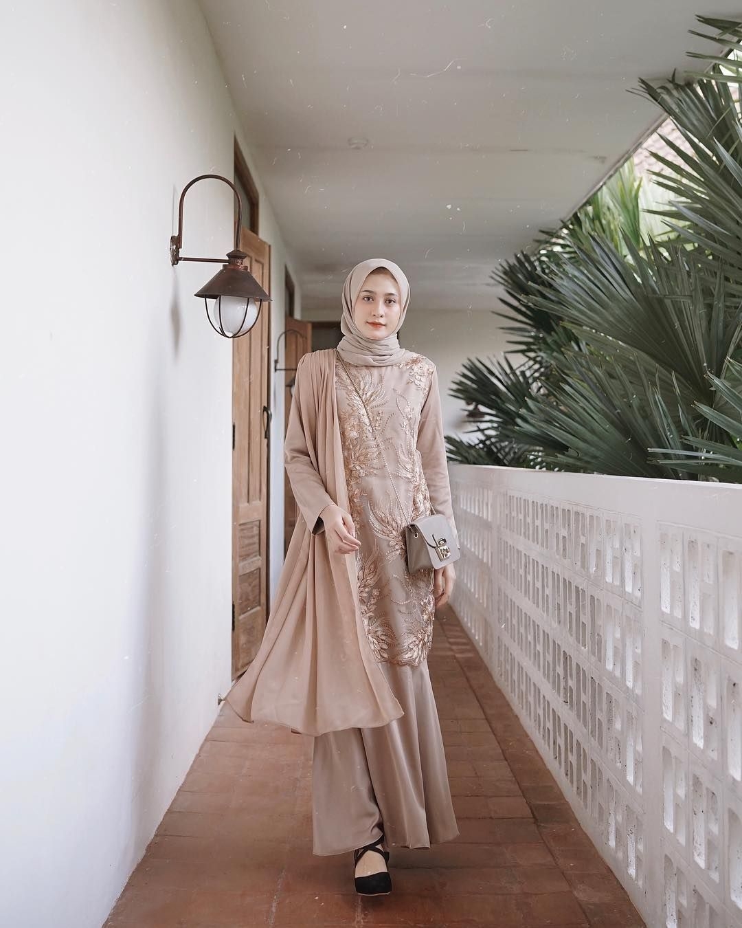 Kebaya wisuda modern hijab dengan dress dan long outer