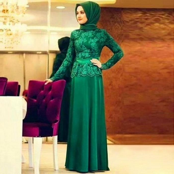Kebaya wisuda modern hijab dengan setelan dress hijau