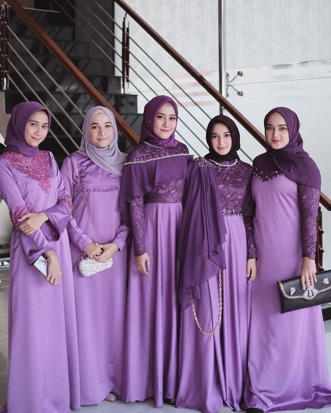 Seragam untuk bridesmaid biasanya dibuat dengan model yang bermacam-macam sesuai dengan keinginan, yang sama hanyalah warnanya. Seperti keempat bridesmaid ini. Ada yang dibuat dengan model biasa yang kemudian diberi ikat pinggang yang dilingkarkan di perut. Ada juga yang memadukan kain dengan sedikit brokat di dalamnya. Ada juga yang memilih memberikan brokat di bagian depan, dan ada juga yang membuatnya tanpa menambahkan brokat.