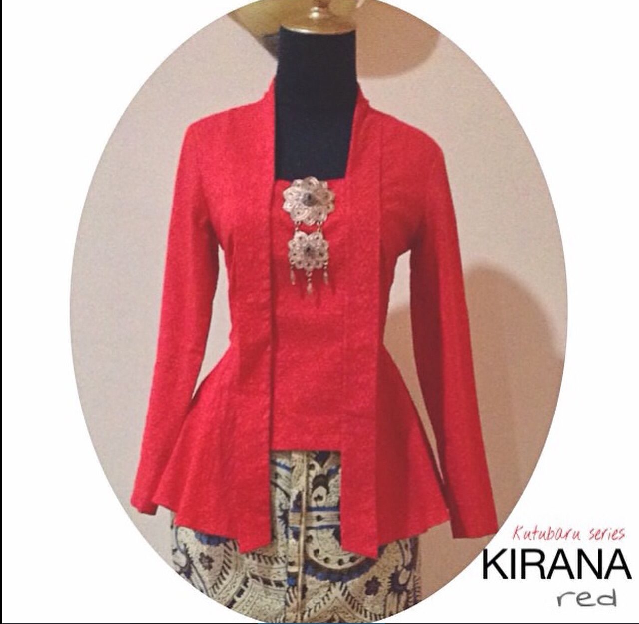 Kebaya kutu baru hijab dengan warna merah menyala. Kembali dengan bahan embos, Anda dapat memilih warna merah menyala ini agar tampilan Anda terkesan menyala pula. Anda dapat memadukannya dengan hijab dan bawahan yang warnanya sama. Gunakan pula aksesoris agar tampilan semakin maksimal.