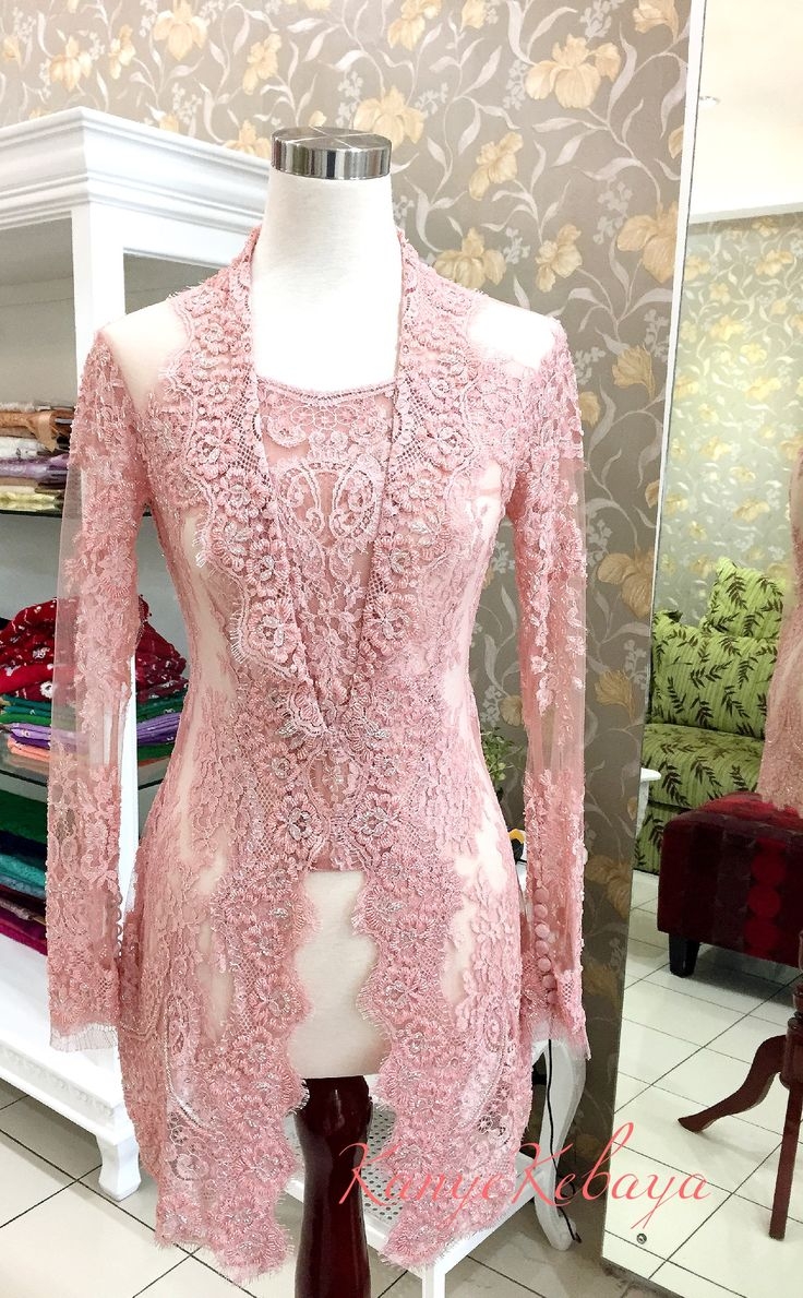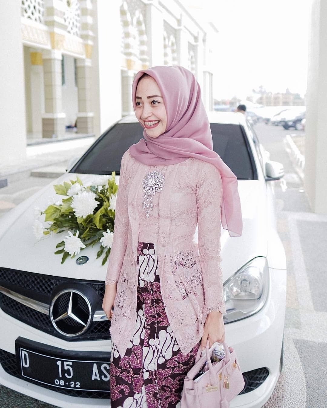 Kebaya kutu baru hijab modern dengan warna pink soft