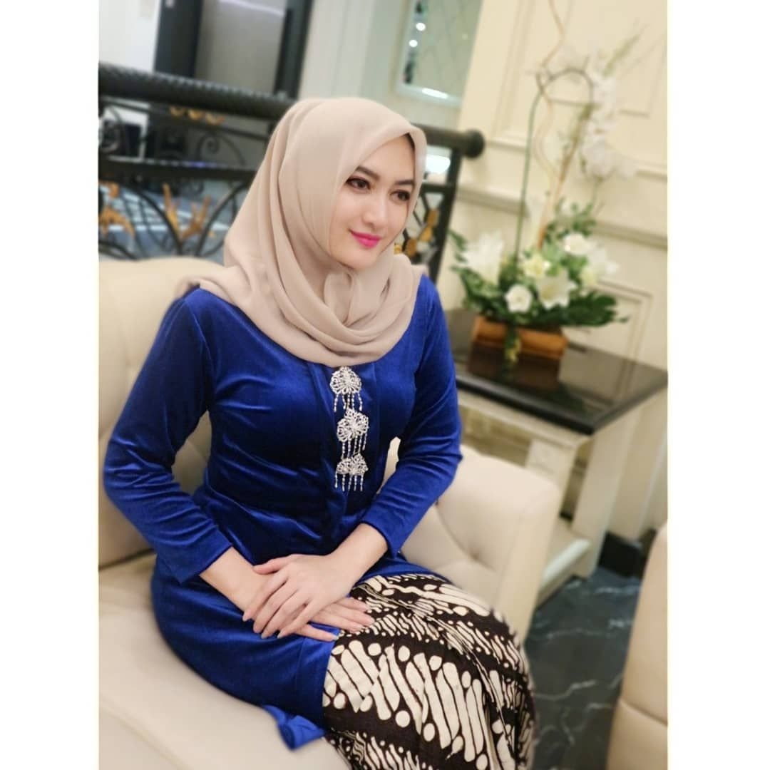 Kebaya kutu baru hijab dari beludru berwarna biru