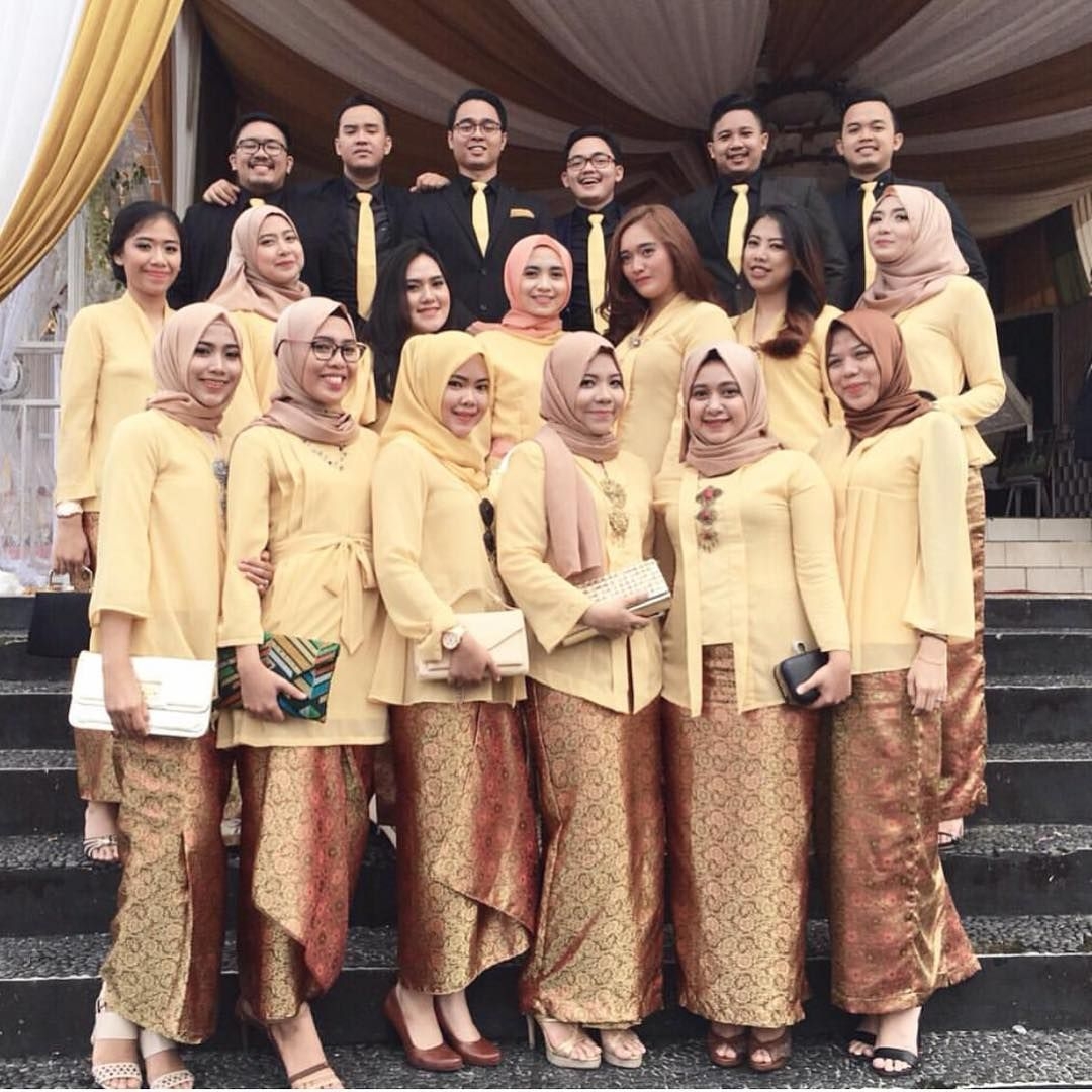 Kebaya kutu baru hijab dengan warna kuning bersama bawahan merah