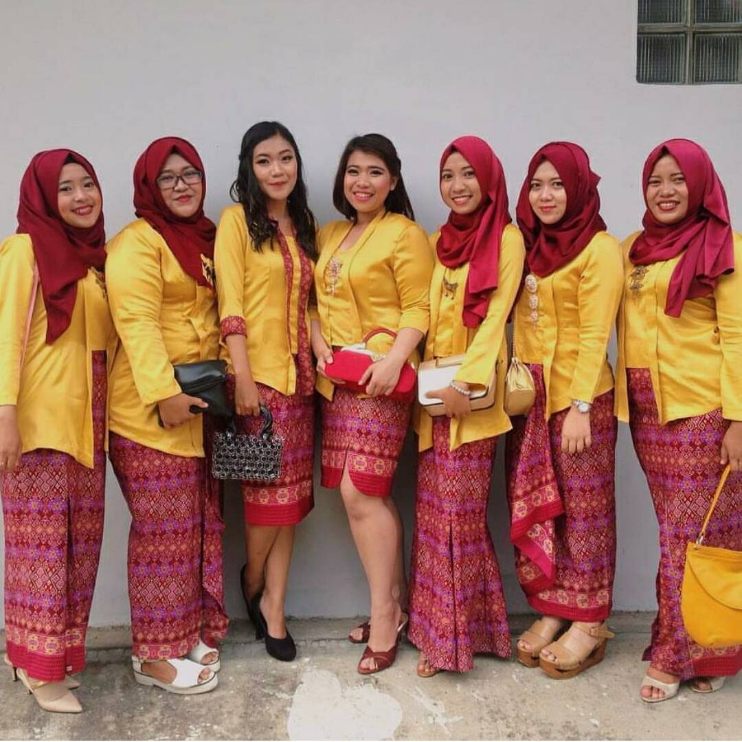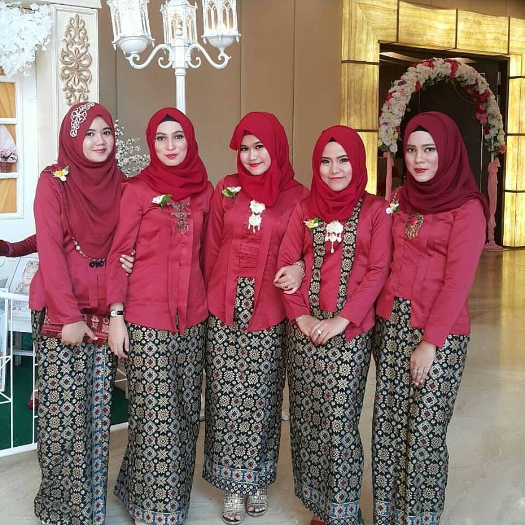 Kebaya kutu baru hijab berseragam dengan warna merah. Warna merah ini cocok juga untuk Anda jadikan seragam di hari pernikahan sahabat Anda. Anda bersama teman-teman akan tampil kompak dengan kebaya warna merah ini. Ditambah dengan aksesoris juga sebagai pelengkap.