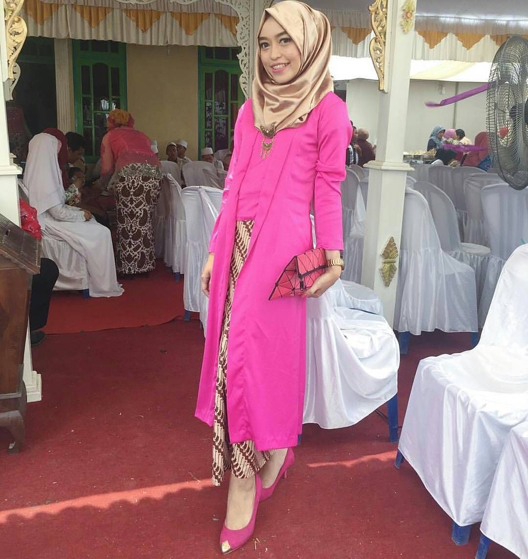 Kebaya kutu baru hijab warna pink menyala ini juga bisa menjadi pilihan Anda. Anda dapat memilih kebaya dengan bahan kain embos. Kain embos ini bahannya dingin dan bermotif halus sehingga akan sangat cantik ketika Anda pakai. Tambahkan pula hijab dengan warna senada agar semakin tampak cantik