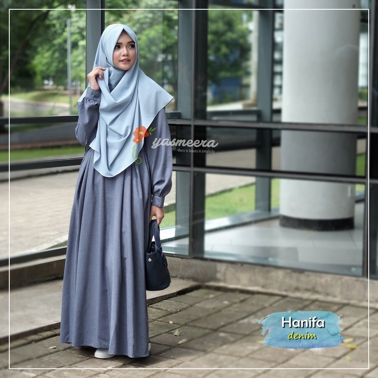 Style baju hijab simple yang tetap syari dengan memaka dress. Memilih bahan denim juga sangat cocok untuk dijadikan bahan dress. Memilih hijab segi empat dengan warna senada agar terlihat cantik. Pakailah hijab segi empat dengan ukuran yang lebih besar agar dapat menutup tubuh bagian atas.