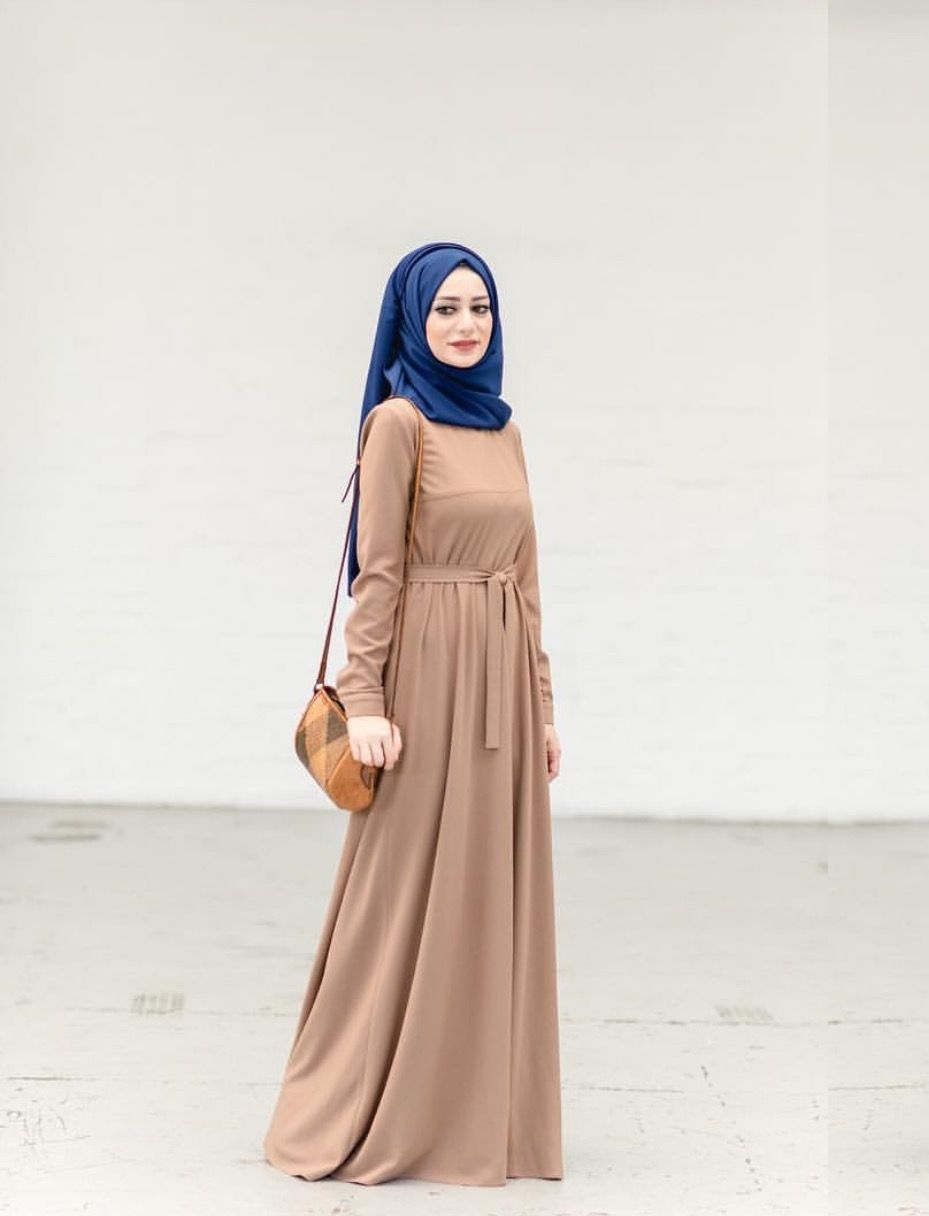 Khusus bagi anda yang menyukai gamis bermodel terusan. Gamis ini bisa anda coba, berwarna coklat polos yang membuatmu terlihat kalem. Pada bagian perut ada tambahan tali bisa anda tali pada bagian depan di bentuk pita untuk menambah kesan tubuhmu terlihat lebih kurus. Untuk jilbab gunakan jilbab dengan warna yang lebih mencolok seperti navy. Penampilan anda terlihat mewah.