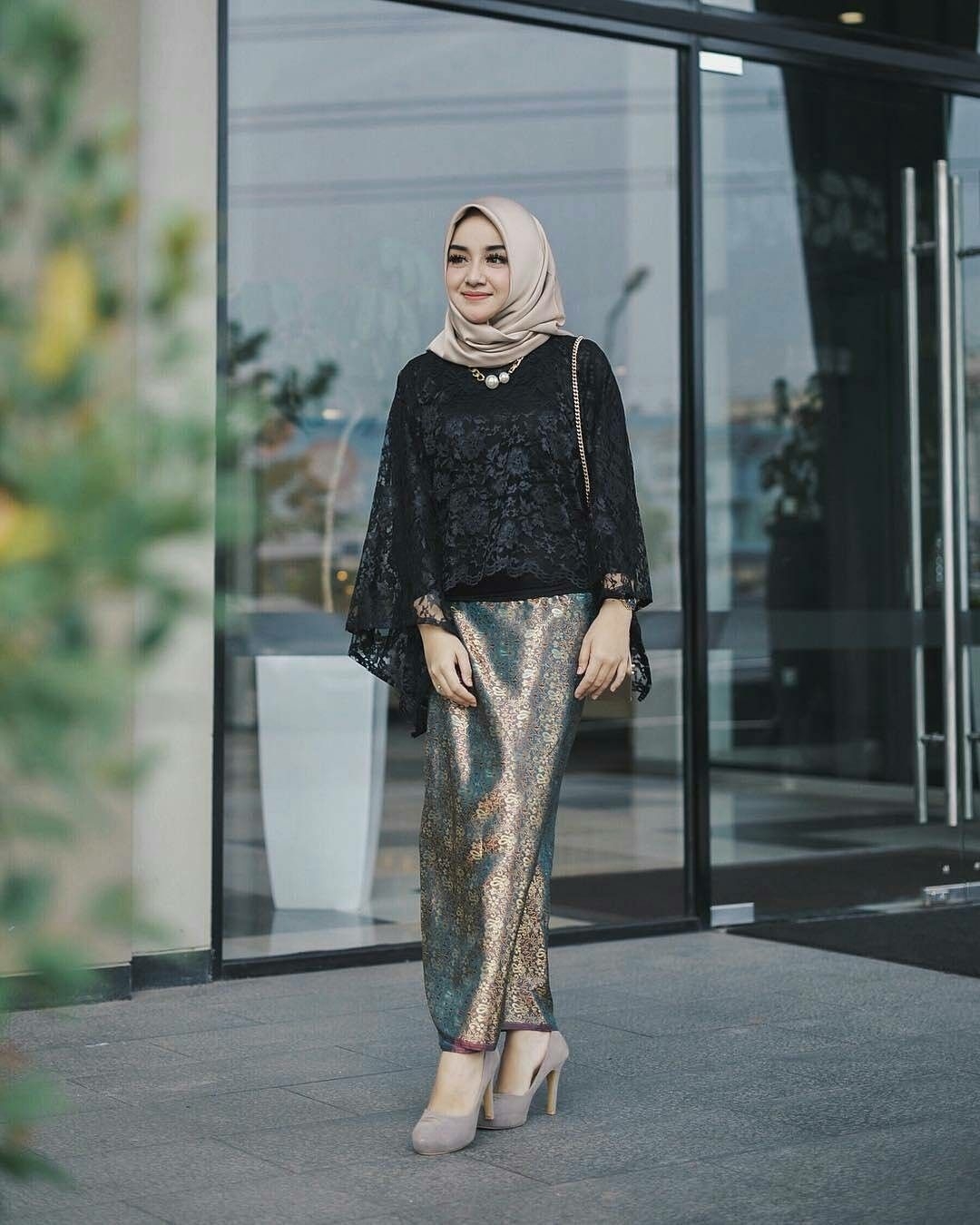 Setelan kebaya modern di era sekarang ini banyak sekali yang menggunakan terutama untuk anak-anak muda. Modelnya yang simple dan kece membuat setelan ini banyak diminati. Atasan dengan menggunakan brukat warna hitam. Untuk bawahan bisa anda gunakan model kain songket, pemakaiannya pun sangat mudah hanya dengan dililitkan memutar saja. Agar lebih mewah gunakan sepatu heels untuk menyempurnakan penampilanmu.