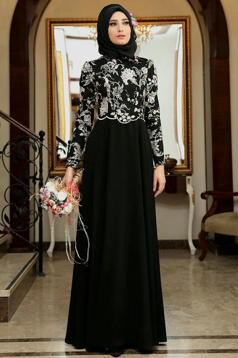 Hitam memang warna yang terkesan gelap dan mungkin jarang orang yang menggunakannya karena terkesan kurang meriah. Terlebih jika digunakan untuk acara seperti pesta. Anda tidak perlu bingung dengan beberapa tambahan kreasi gamis warna hitam,yang mampu membuat anda terlihat mewah. Tambahan kombinasi brukat warna putih pada bagian atas. Untuk bagian bawah beri kain sifon berbahan tipis penampilan anda tak kalah dengan warna selain hitam.