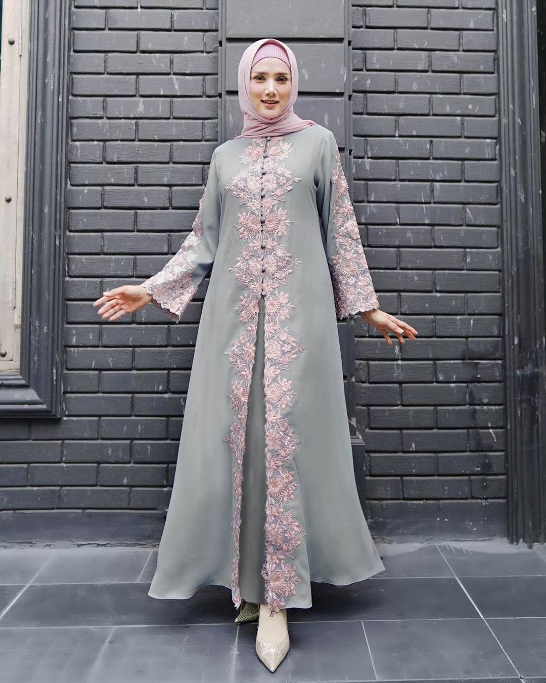 Gamis syar’i merupakan salah satu pakaian yang simple dan praktis digunakan. Warna abu kearah tosca dan diberi tambahan retail brukat di bagian pinggir membuat gamis ini terlihat mewah. Bagi anda yang suka dengan model gamis syar’i seperti ini pas rasanya jika anda gunakan untuk acara harian seperti pengajian, pergi ke acara pernikahan dan lain sebagainya.