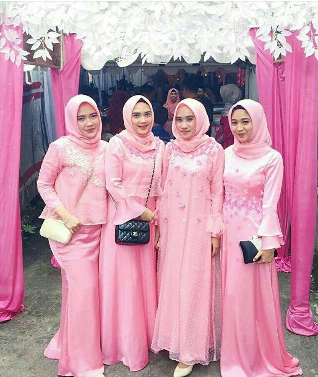 Pergi ke acara pernikahan memang kadang membutuhkan dress code agar bisa tampil kompak dengan teman-teman maupun keluarga. Model gamis berwarna pink ini sangat kalem dan terlihat sangat pinky girls banget. Dengan berbagai model yang bisa anda gunakan dari model setelan sampai gamis langsungan. Keuntungan dari gamis langsungan bisa juga dipakai ibu hamil lho. Pada bagian perut dibuat agak longgar agar merasakan nyaman saat memakainya.