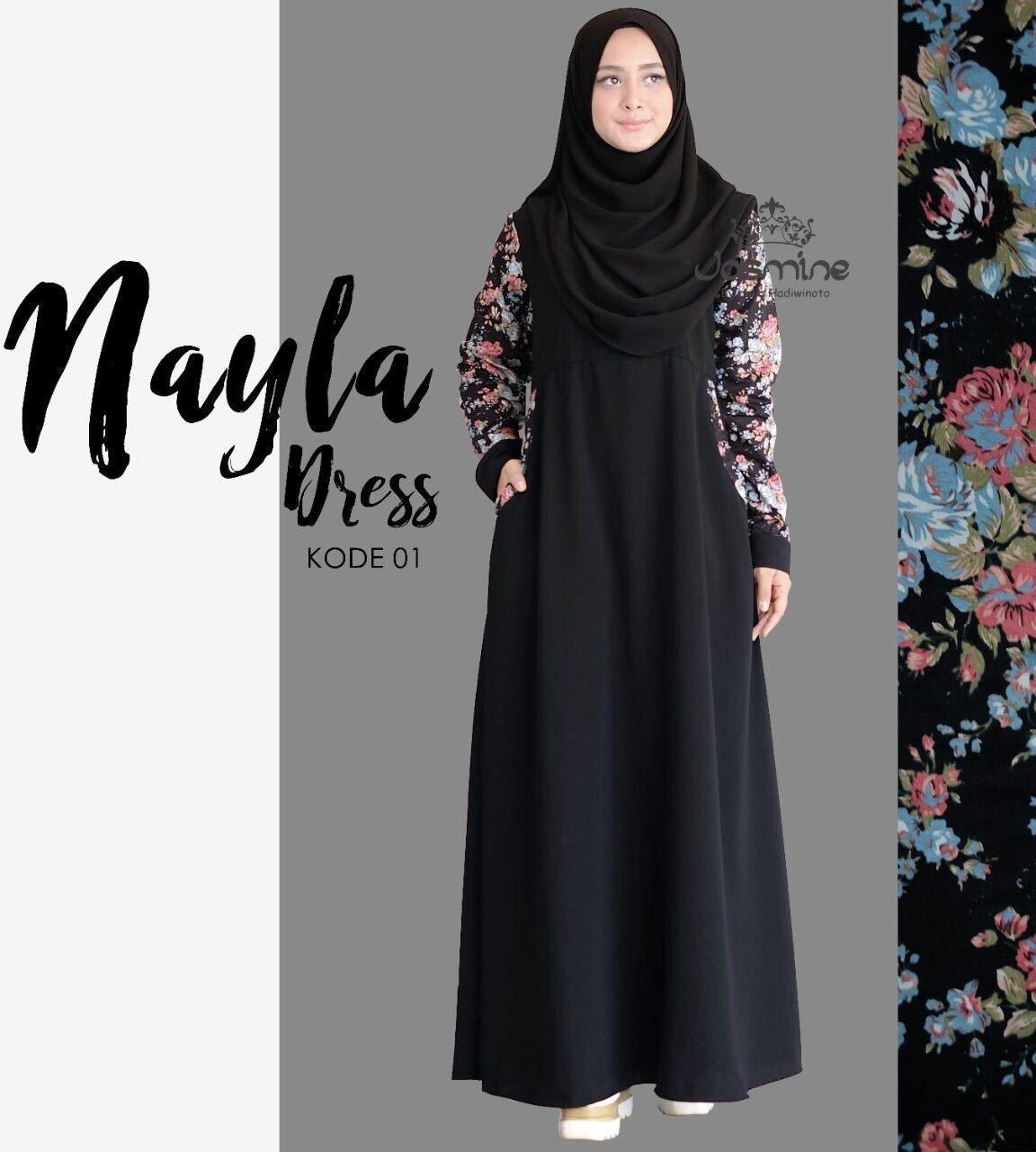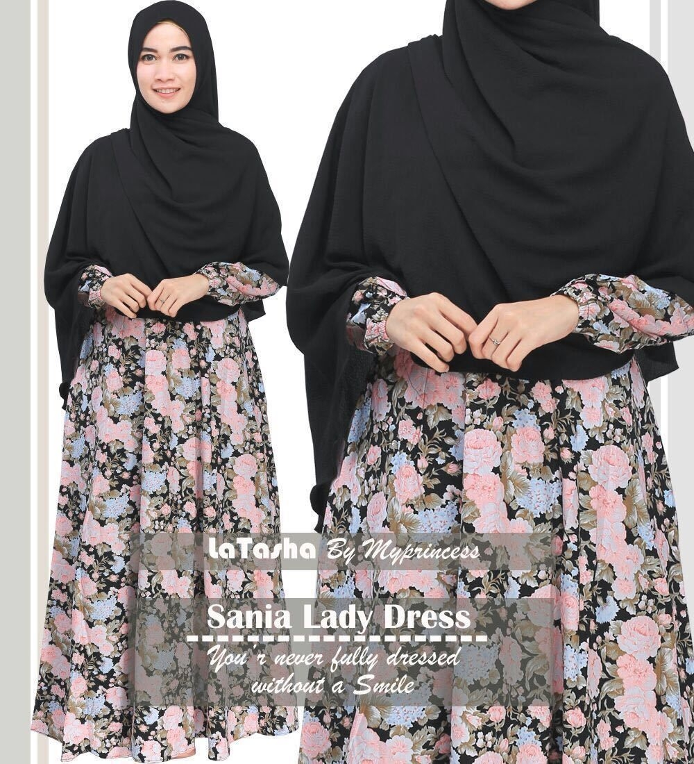 Gamis katun jepang memiliki model yang meriah walau dasar warna awal adalah hitam hal itu bukan jadi suatu masalah jika digunakan untuk acara pesta sekalipun. Dikombinasikan dengan motif bunga warna ungu tentunya gamis ini menjadi suatu inspirasi anda. Gunakan jilbab warna ungu sesuai dengan motif bunga yang ada pada gamis. Penampilan anda akan terlihat sangat manis.