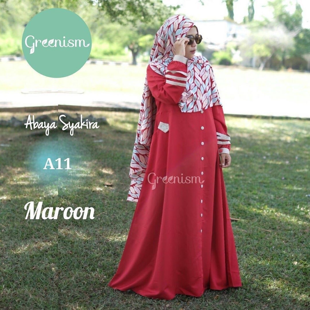 Model gamis ini terlihat sangat cerah dengan warna marun yang ada. Modelnya yang long dress tanpa adanya potongan didalam gamis sehingga membuat anda nyaman untuk memakainya. Motifnya yang polos perlu adanya tambahan aksen full kancing agar terkesan modis. Untuk jilbab bisa anda gunakan yang memiliki corak motif agar penampilanmu makin keren.