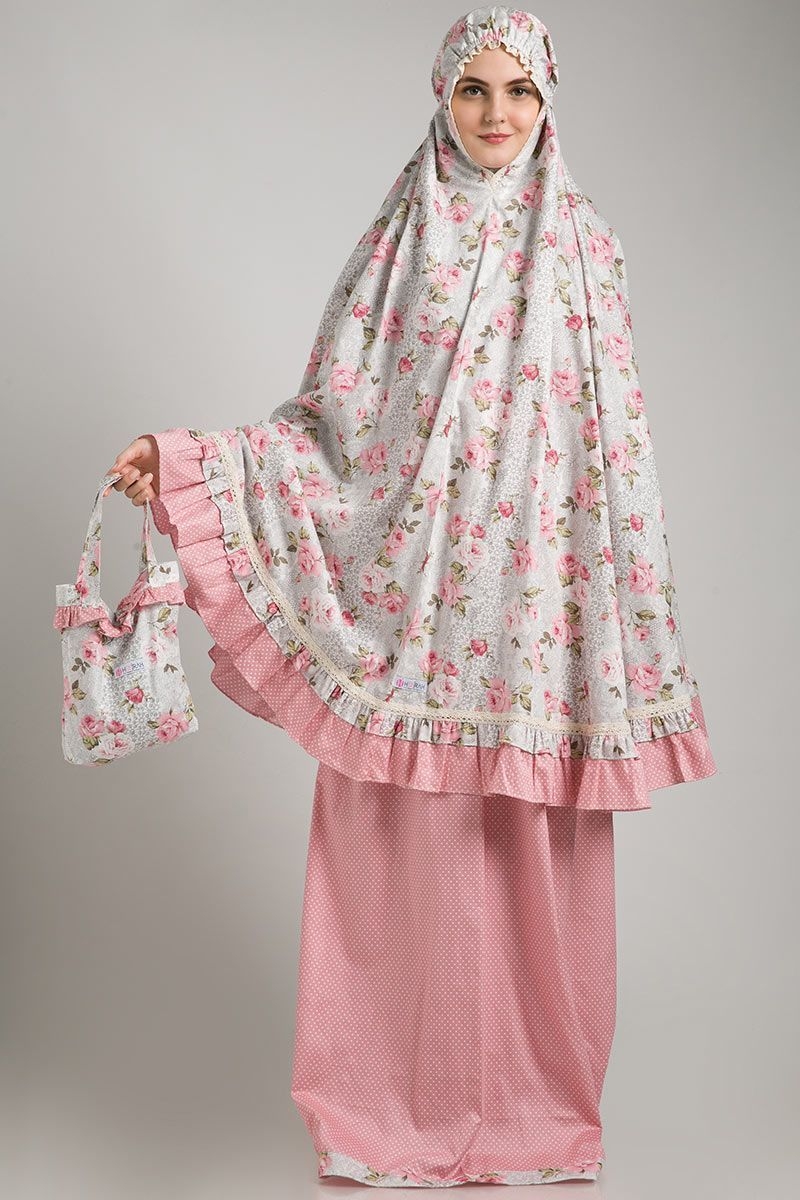 Tak hanya digunakan sebagai bahan gamis dan jilbab saja, Ternyata bahan katun jepang bisa anda gunakan sebagai mukena lho. Bahannya yang dingin dan menyerap keringat, membuat anda tidak akan merasakan panas terlebih saat melakukan ibadah sholat.  Dengan atasan bermotif bunga ini bisa anda kombinasikan dengan bawahan rok motif polkadot warna pink.