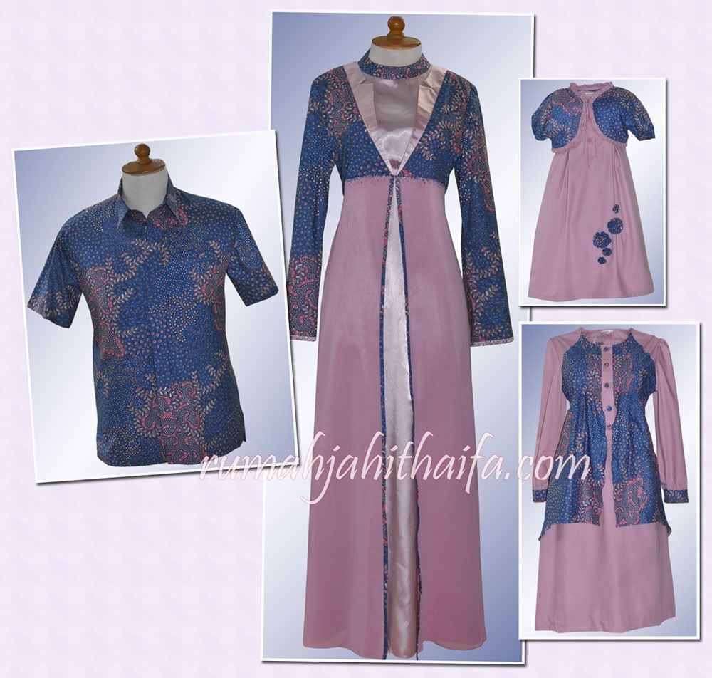Untuk mendapatkan baju sarimbit keluarga, jika kita membelinya langsung di toko memang jarang yang ada. Anda paling tidak harus pergi ke penjahit dengan permintaan baju dengan model yang sama. Pilihlah motif dan bahan yang sesuai dengan seluruh keluarga anda. Seperti gambar ini motif batik dengan warna gelap cocok untuk kaum pria sementara kombinasi satin dengan menggunakan warna pink pas untuk kaum wanita. Jadi memang harus serasi antara yang satu dengan yang lain.