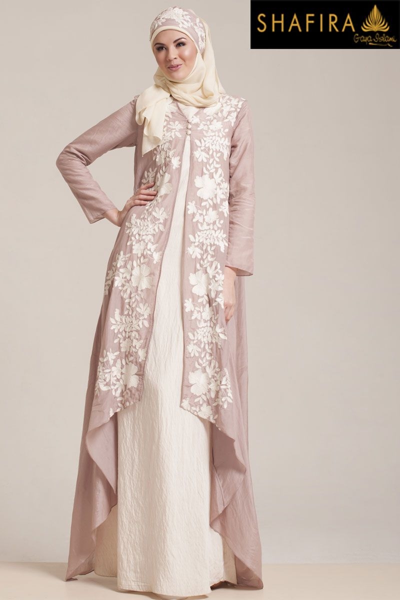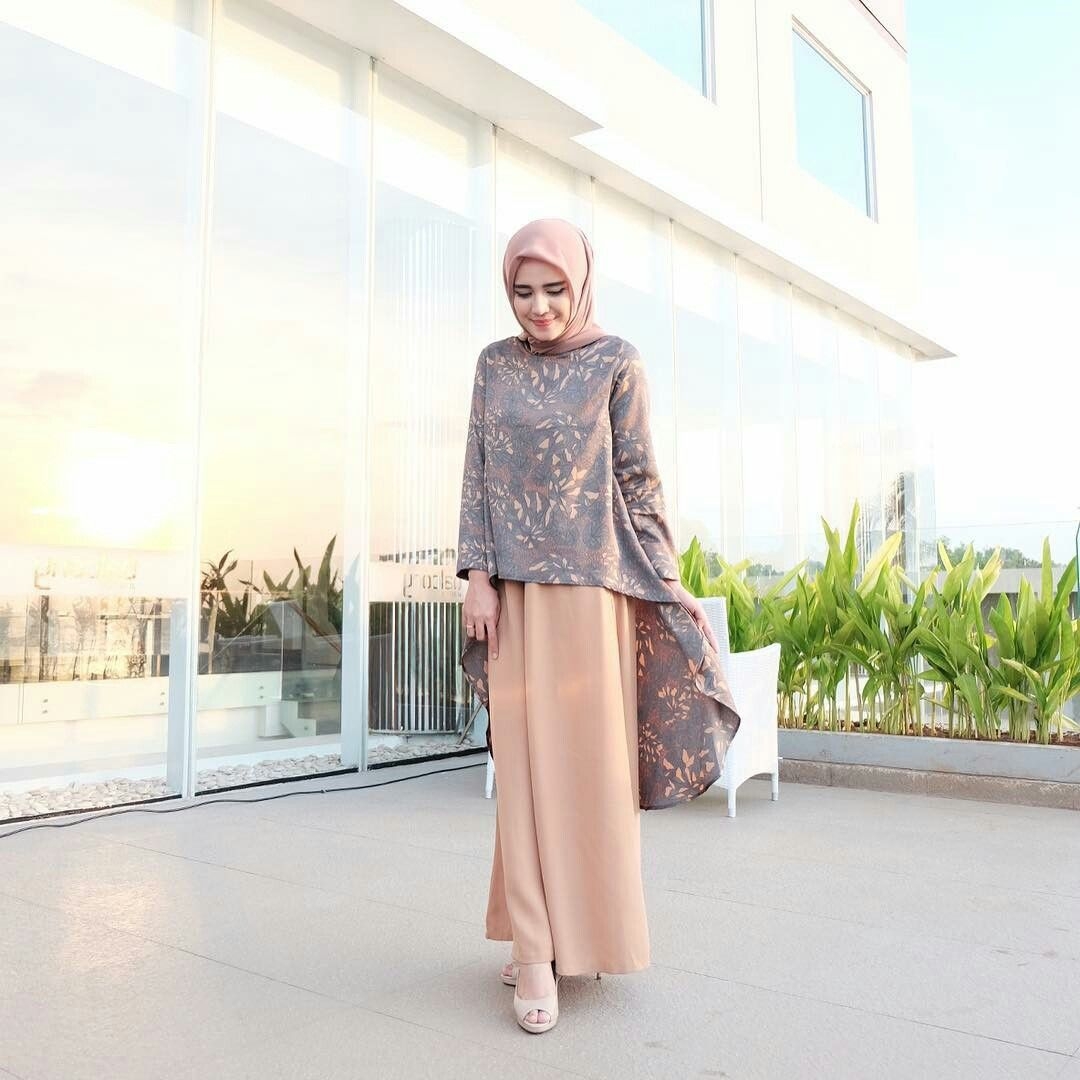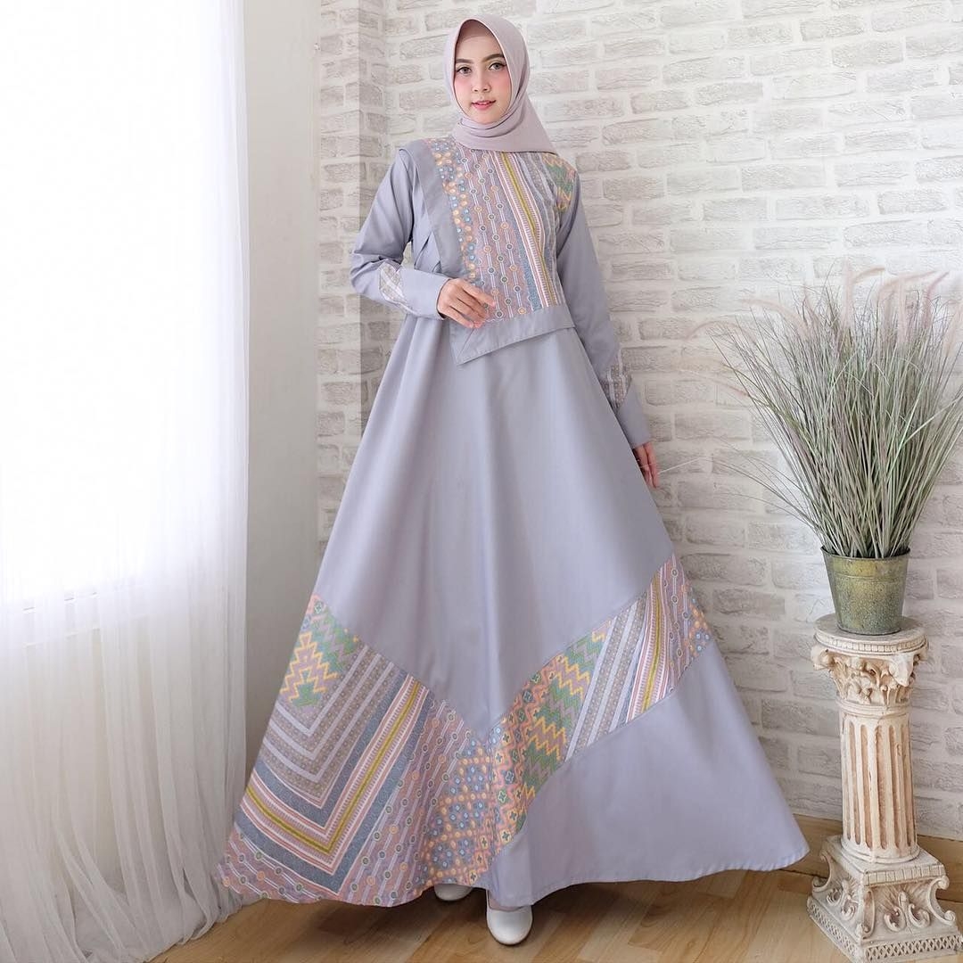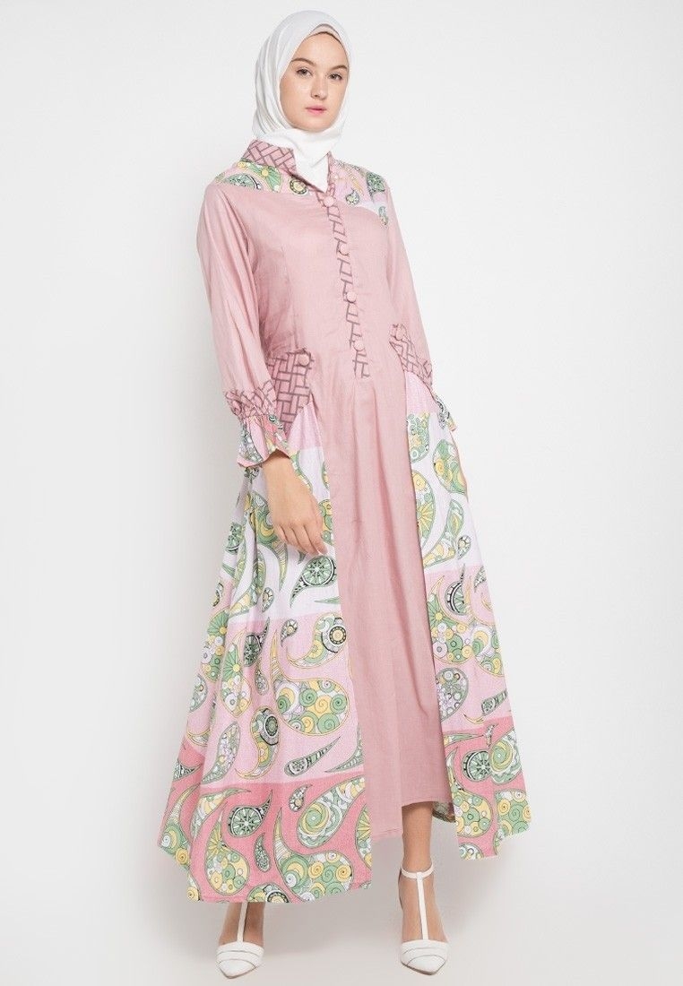 Gamis dengan model setelan ini adalah bentuk abaya. Model Abaya memang sangat melekat dengan bentuk bawahan rok yang sangat besar dan mengembang. Tentu hal itu menjadi keunggulan tersendiri bagi abaya, sehingga menjadi model yang masih digemari hingga saat ini. Warnanya yang soft dengan kombinasi satin serta tambahan batik yang melekat. Membuat anda tampil istimewa di berbagai kesempatan.