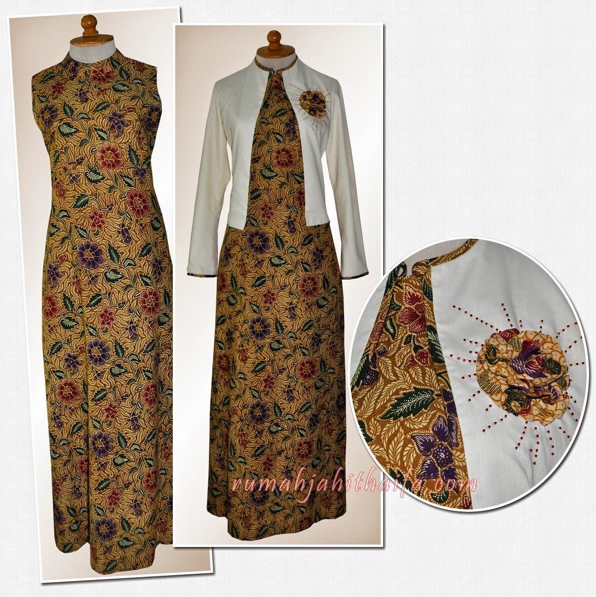 Gamis Batik Kombinasi Blazer Bahan Satin