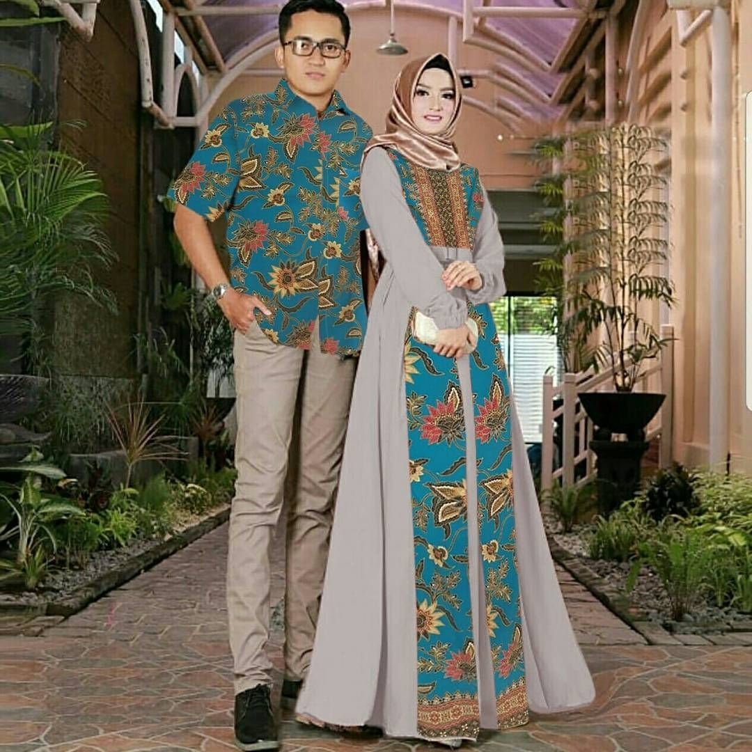Siapa sih yang tidak ingin pergi ke acara pesta bersama pasangan? Pasti semua orang menginginkan bukan. Penggunaan baju couple sangat begitu dibutuhkan agar anda tampak kompak dan serasi saat bersama. Pada cewek pakai gamis batik warna tosca dengan tambahan kombinasi satin warna abu. Sangat kreatif sekali karena kain batik hanya di sematkan di bagian paling depan saja. Tidak kalah penting untuk pakaian prianya menggunakan batik yang sama dengan model kemeja lengan pendek.
