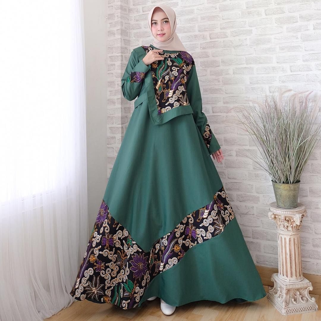 Gamis Batik Setelan Model Abaya Bahan Satin Warna Hijau