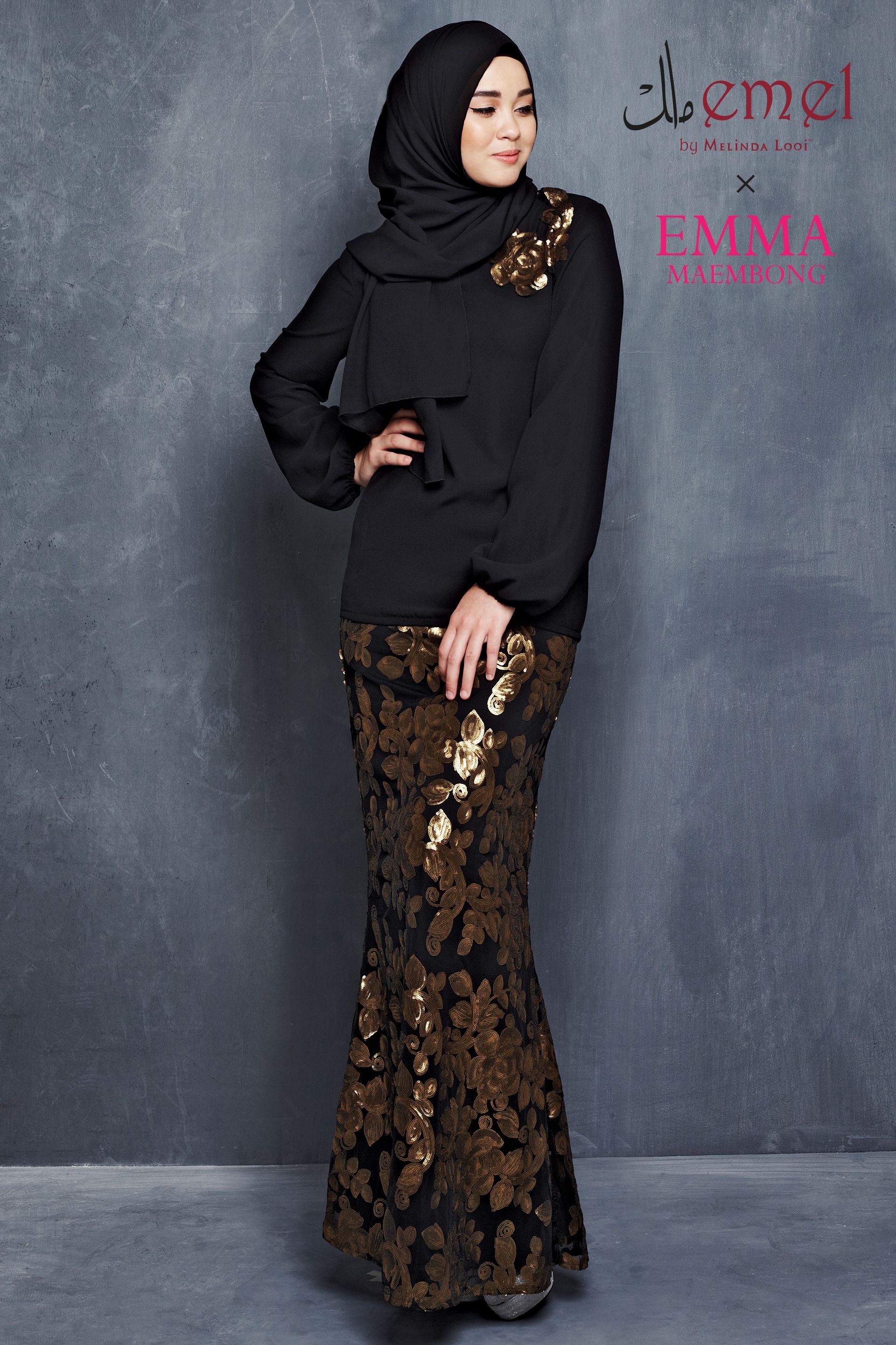 Batik motif timbul bagi sebagian orang memang sesuatu yang unik dan menjadi sebuah incaran. Seperti model ini Setelan gamis kebaya yang memiliki warna dasar hitam. Pada bagian atas menggunakan bahan satin warna hitam dan kombinasikan sedikit batik timbul warna gold. Sementara bawahan rok full motif batik timbul. Walaupun warnanya hitam tapi gamis ini sangat terlihat mewah dengan motif batik warna gold yang ada.