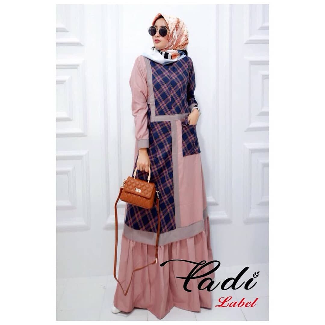 Anak muda jaman sekarang memang lebih suka dengan gaya casual dan simple. kombinasi motif kotak-kotak pada gamis ini akan membuat anda semakin kece dalam berpenampilan. Kombinasikan dengan kain satin berwarna pink. Pada bagian atas dibentuk model seperti blus dan panjang di bawah lutut. Sementara pada bagian bawah roknya dibuat model agak lebih mengembang. Cocok digunakan untuk acara santai dan non formal.