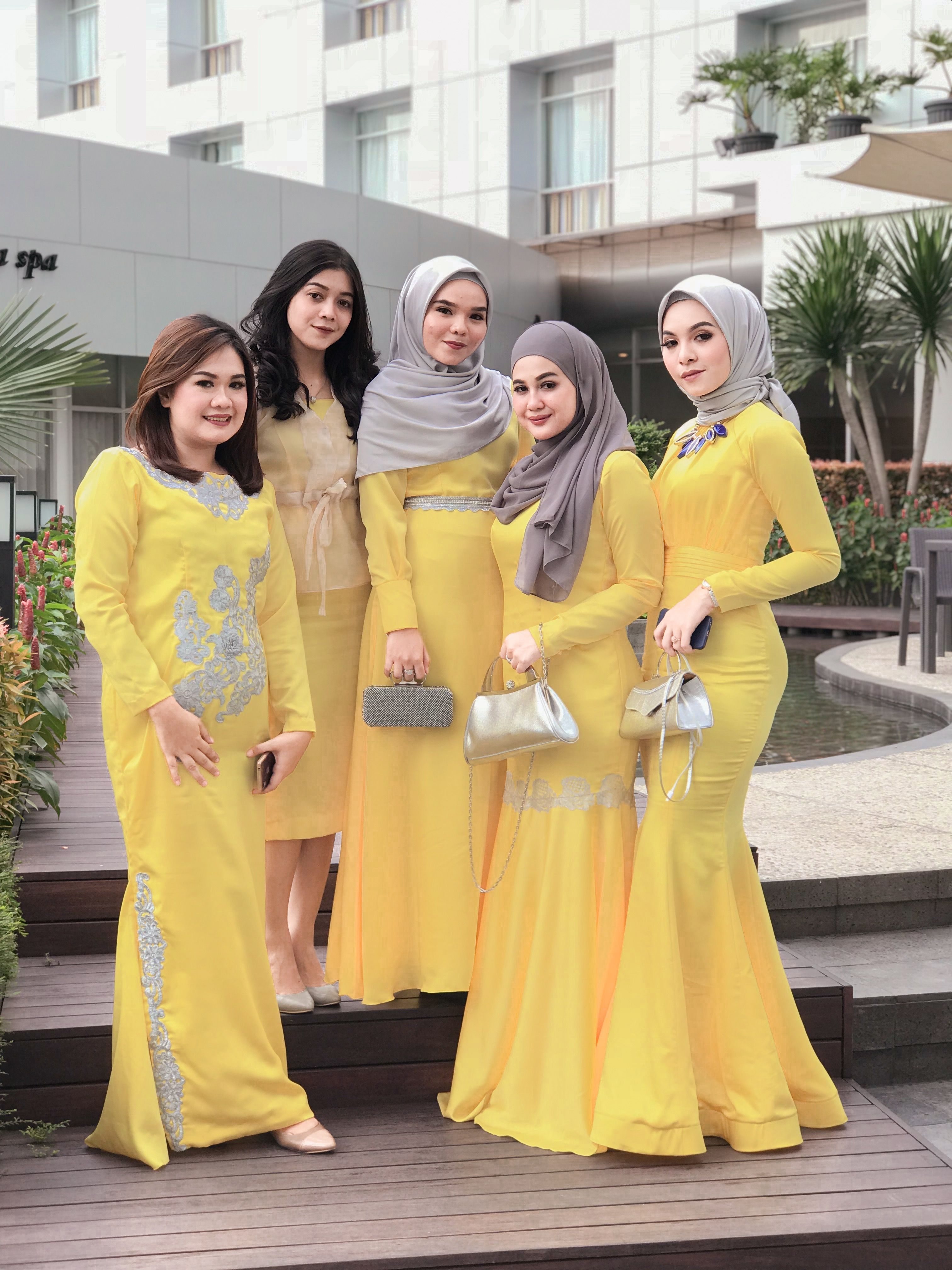 Ada inspirasi dress kondangan buat kamu yang suka dengan warna kuning. Ada lima model yang bisa kamu pilih. Bisa membuatnya dengan polosan dan tidak menambah aksesoris apapun. Bisa juga ditambahkan dengan aksesoris sesuai keinginan. Warna dari dress ini terlihat cerah dan ceria.