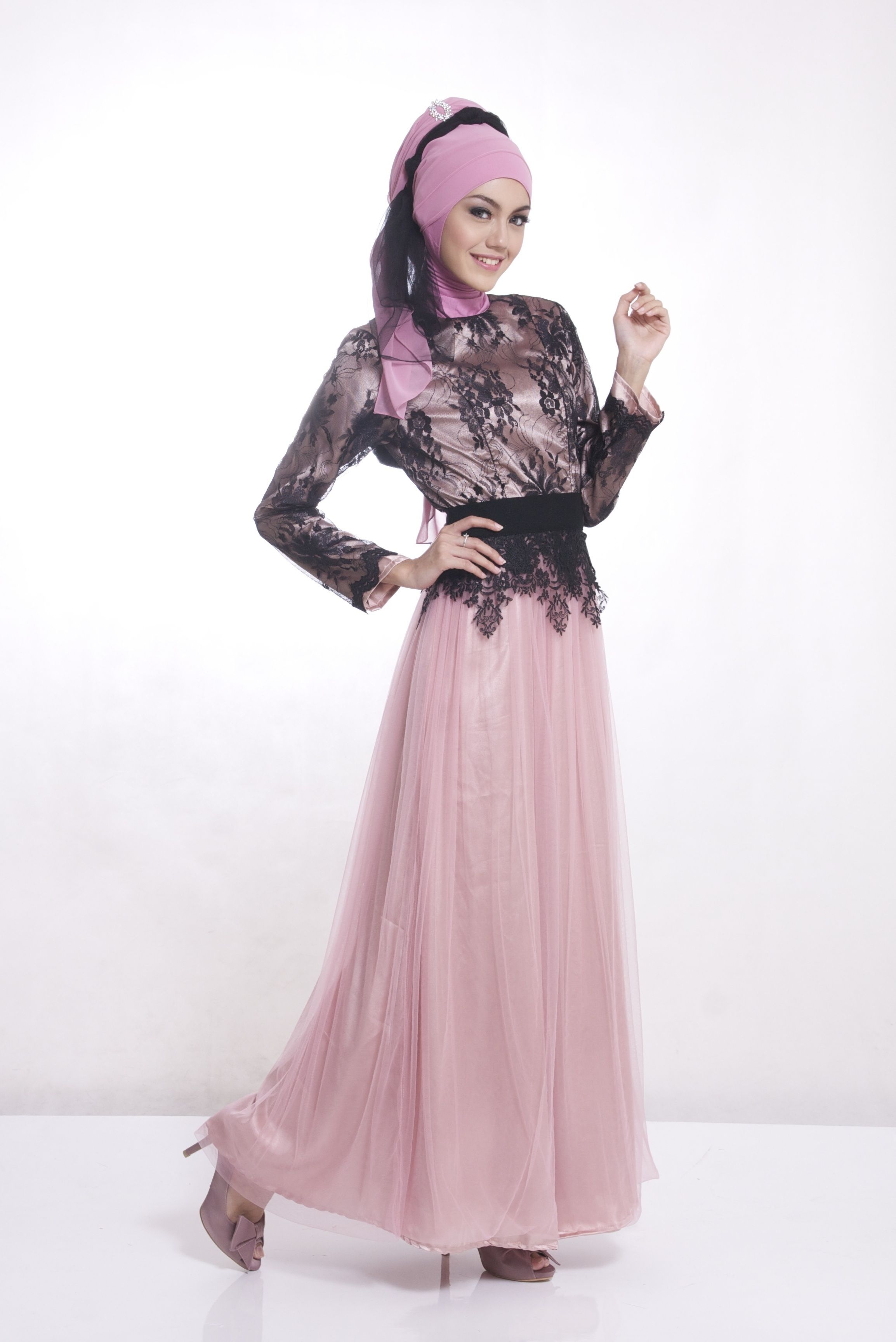 Dress pink dengan brokat hitam ini sepertinya cocok dipakai oleh wanita yang memiliki tubuh lebih ramping. Kombinasi brokat hitam hanya dibagian atas, di bagian perut diberikan pengikat warna hitam. Dipadukan dengan jilbab warna pink kombinasi hitam yang dipakai seperti ala-ala hijabers.