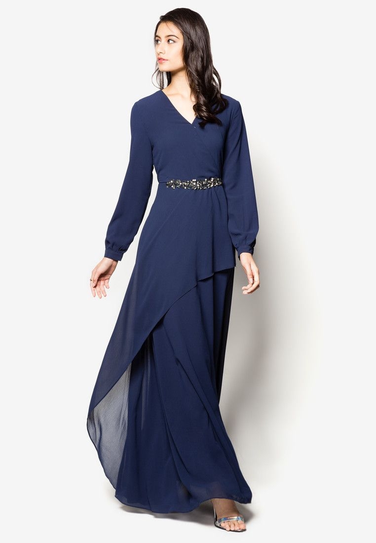 Dress berwarna navy ini dibuat dengan model yang simple. Bagi kamu yang suka berpenampilan simple, dress ini bisa menjadi referensi buat kamu. Tidak perlu banyak menggunakan tambahan, hanya dengan menambahkan aksesoris di bagian perut sudah menambah kesan cantik pada dress ini. Dress seperti ini bisa juga dipakai bersama dengan jilbab berwarna navy.