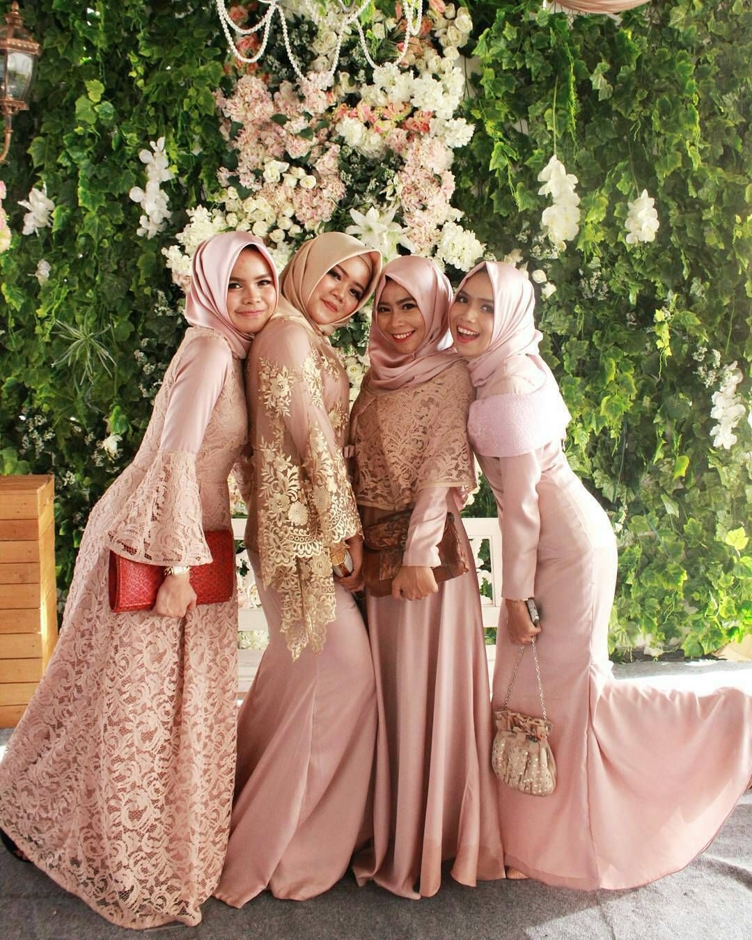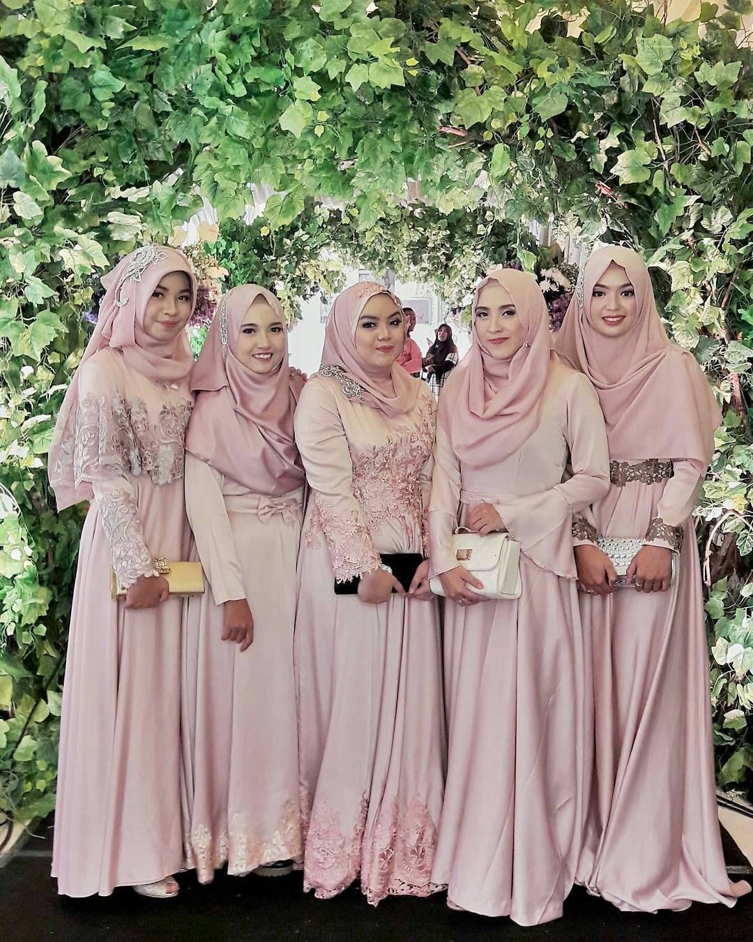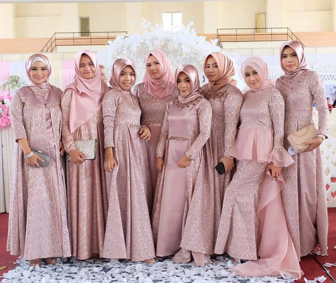 Macam-macam dress untuk bridesmaid ini bisa kamu jadikan referensi untuk membuat dress kondangan. Ada delapan model yang bisa kamu pilih. Bisa juga menambahkan aksesoris lain sesuai selera kamu. Jilbab yang dipilih pun sesuai selera, bisa memilih warna peach atau pink. Bisa juga memilih warna cream yang cocok dipadukan dengan warna pink.