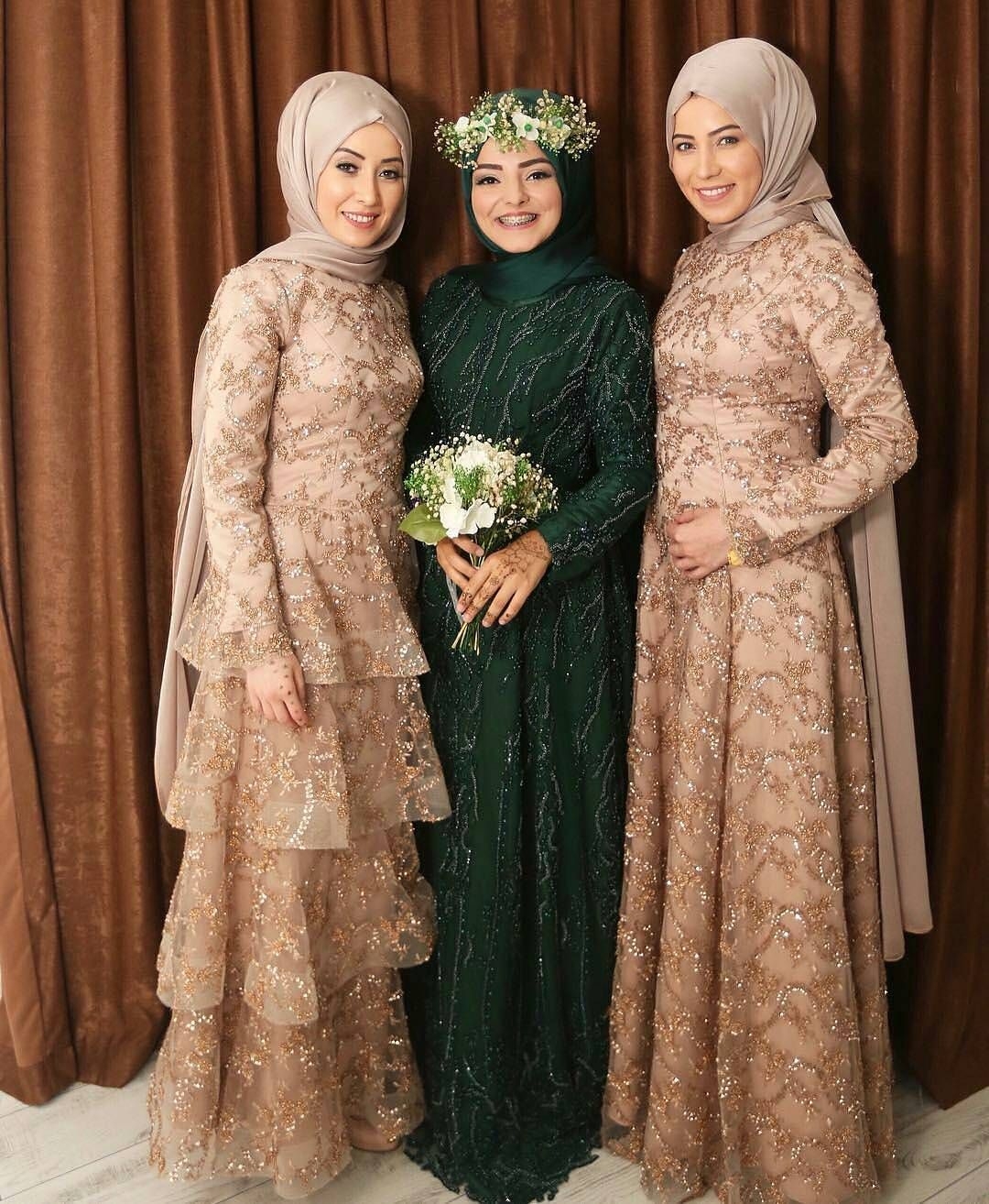 Dress untuk bridesmaid satu ini terlihat simple dan cantik. Dengan pemilihan warna dress yang soft dan kalem. Dipadukan dengan jilbab warna yang sama dan senada ditambahkan dengan hiasan di atas kepala, memberikan kesan cantik. Penampilan seperti ini cocok buat kamu yang suka berpenampilan simple dan cantik.