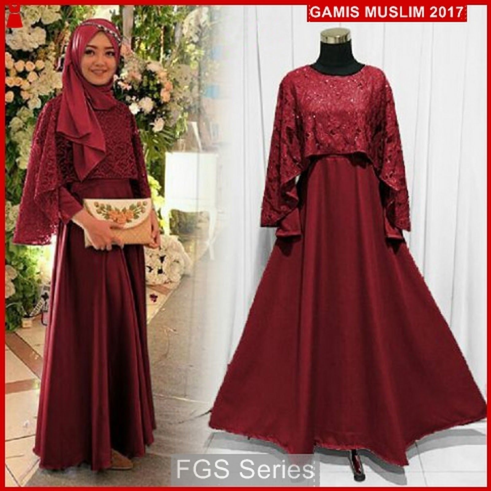 Gaun pesta yang memilih satu warna di dalamnya ini sangat cantik sekali. Gaun yang dipadukan dengan crepe berwarna merah maroon, ini yang memberikan kesan cantik pada gaun ini. Dipadukan dengan jilbab berwarna sama yang dipakai ala-ala hijabers dan ditambahkan dengan aksesoris di kepala, sangat cantik.